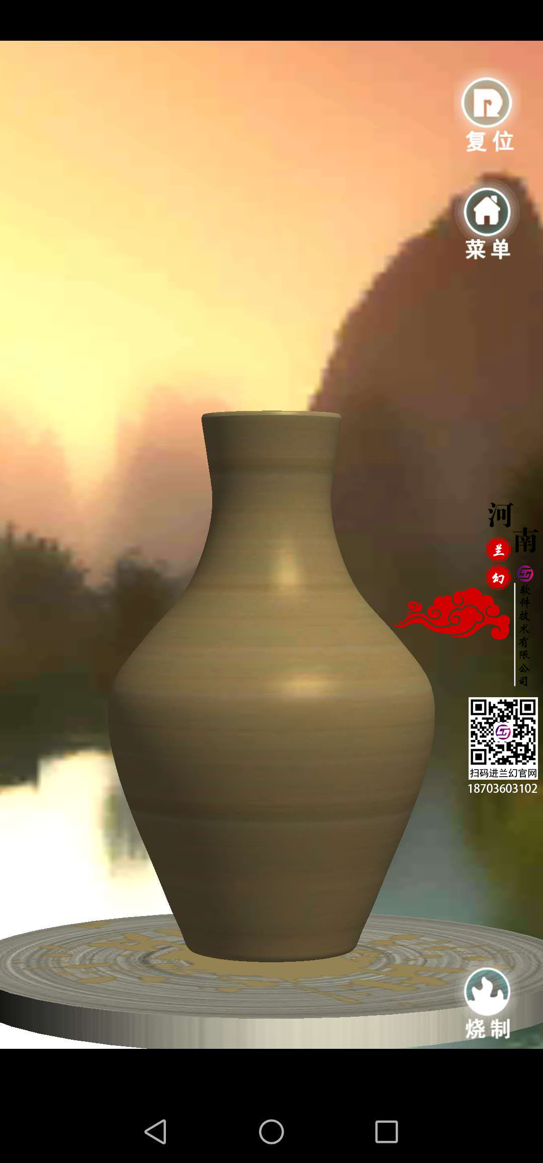 當對泥坯的造型比較滿意的時候,點擊屏幕右下角的燒制圖標,就可以將土胚放到窯中燒制。不過不用擔心,只需幾秒鐘燒制過程就完成了。燒制完成的陶器造型十分逼真,甚至可以看到瓶口的細小的裂紋。
