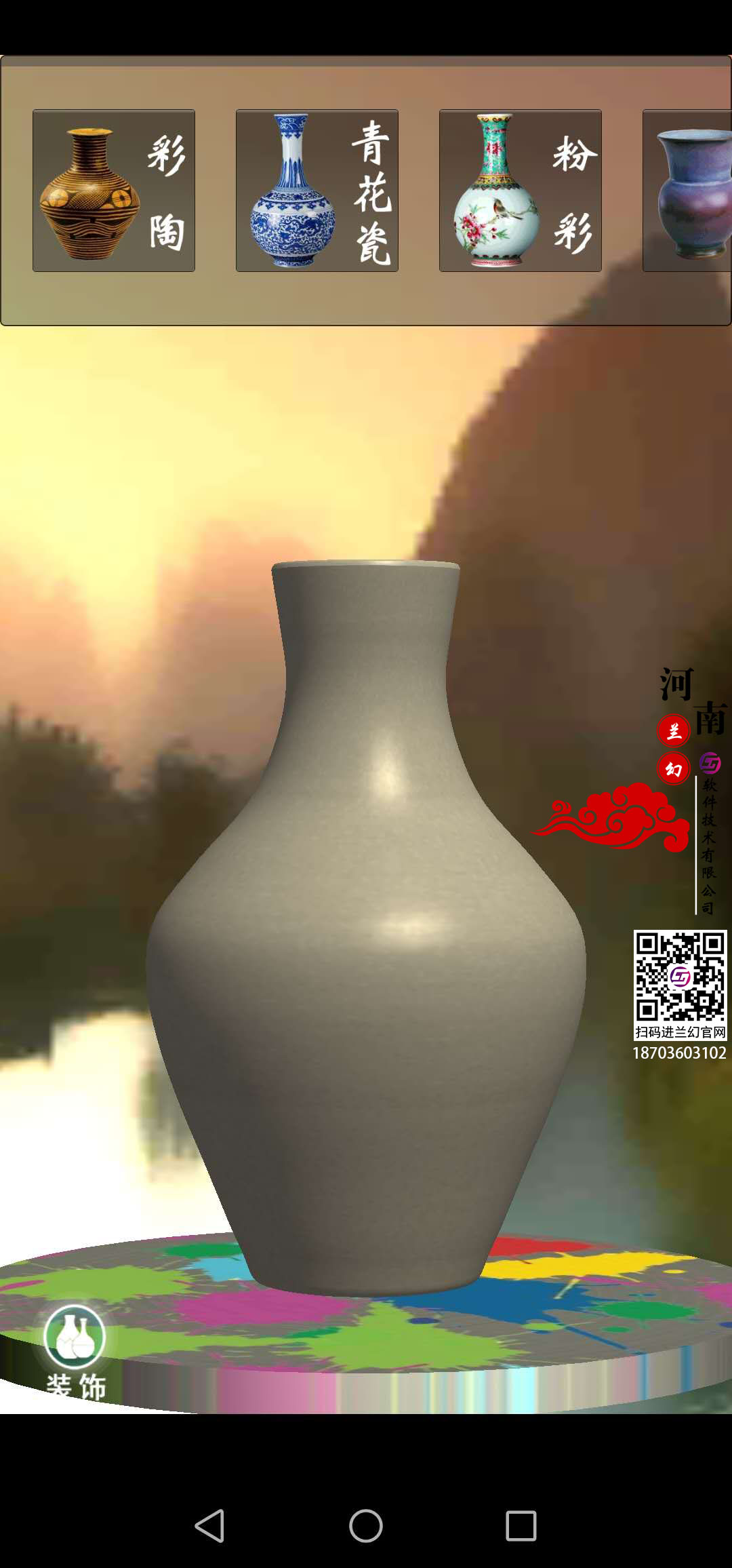 軟件中一共有:彩陶、青花瓷、粉彩、鈞瓷、哥瓷、汝瓷、定瓷、官瓷、龍泉瓷、diy瓷器十總陶瓷分類供學生訓練。學生選擇瓷種為自己的作品上釉、上色/添加紋理。