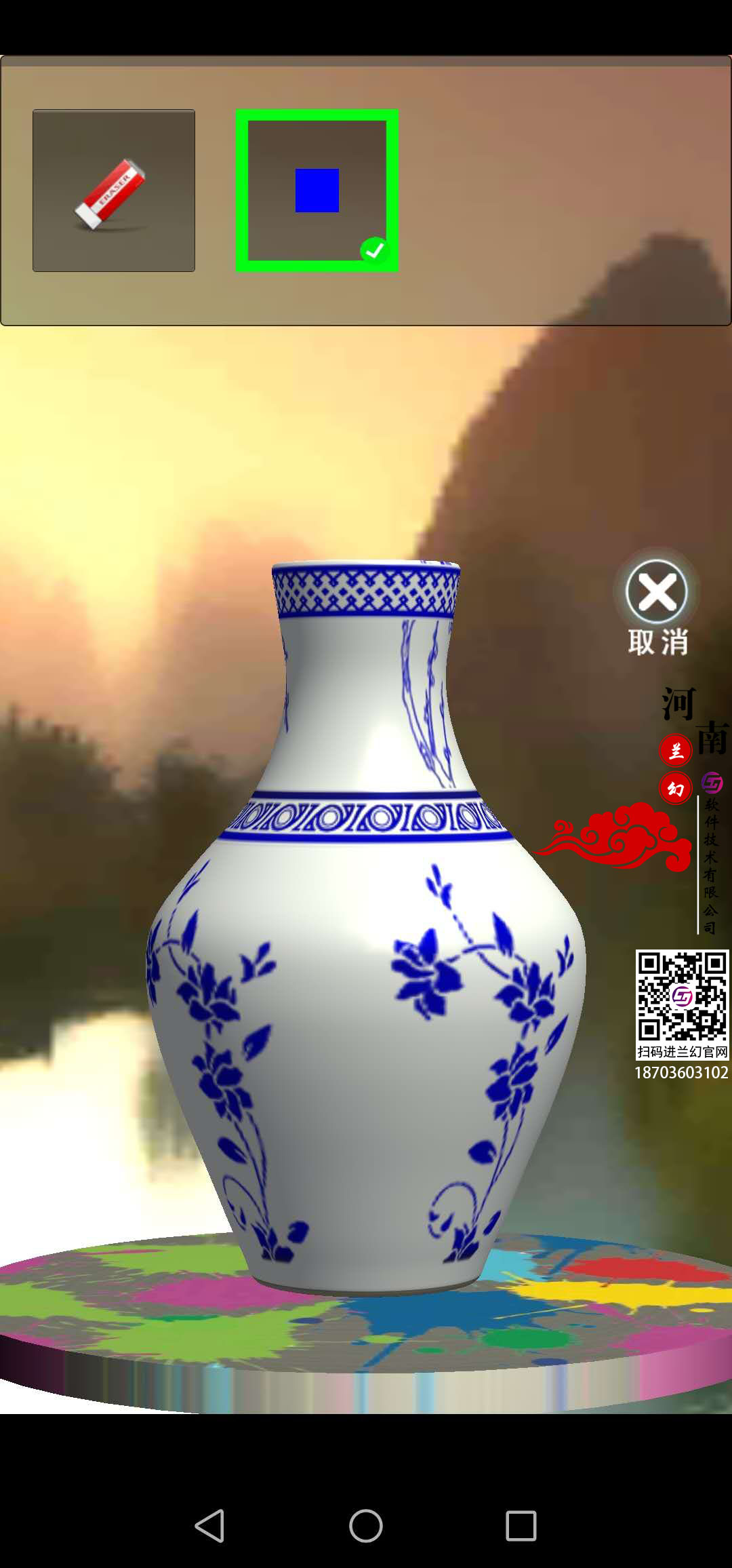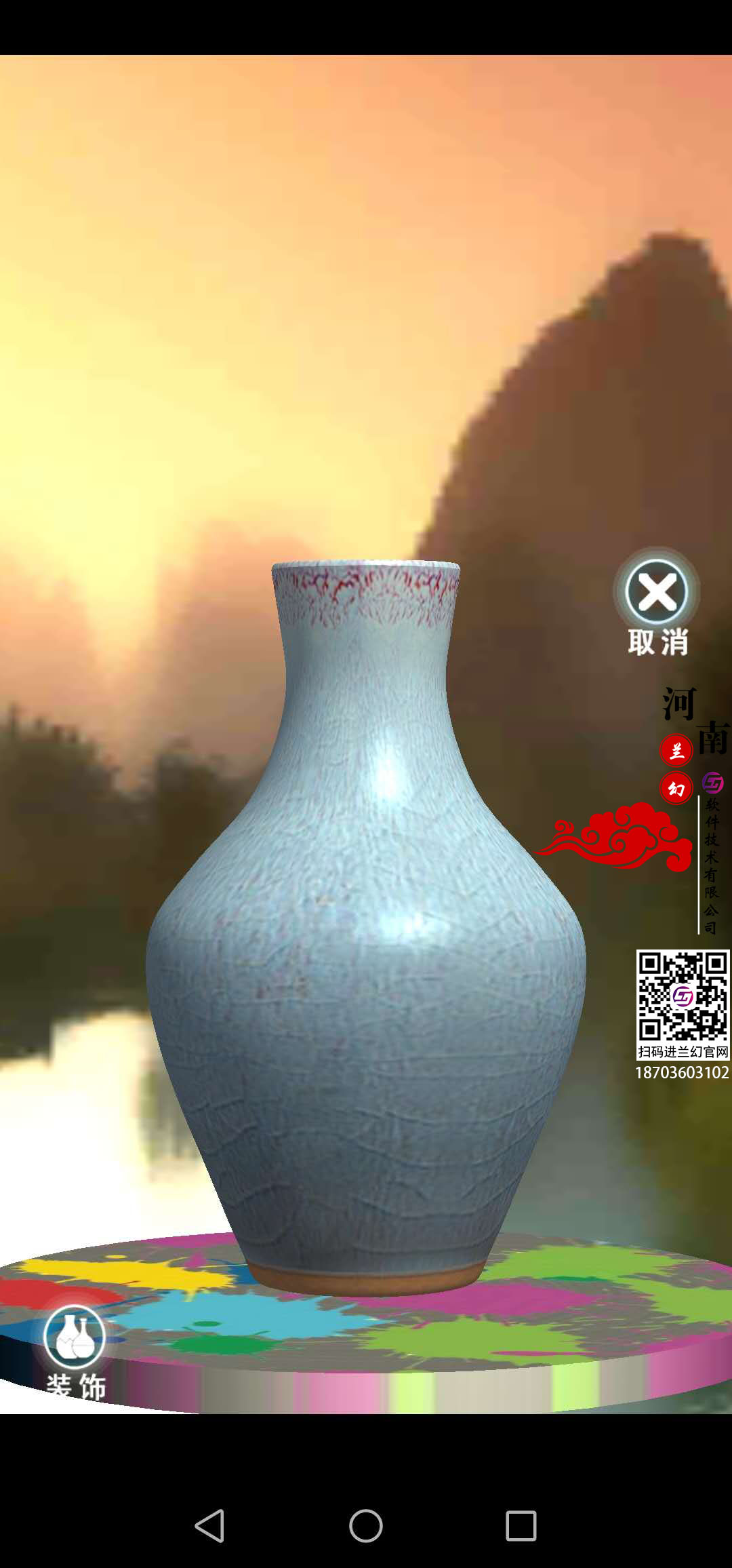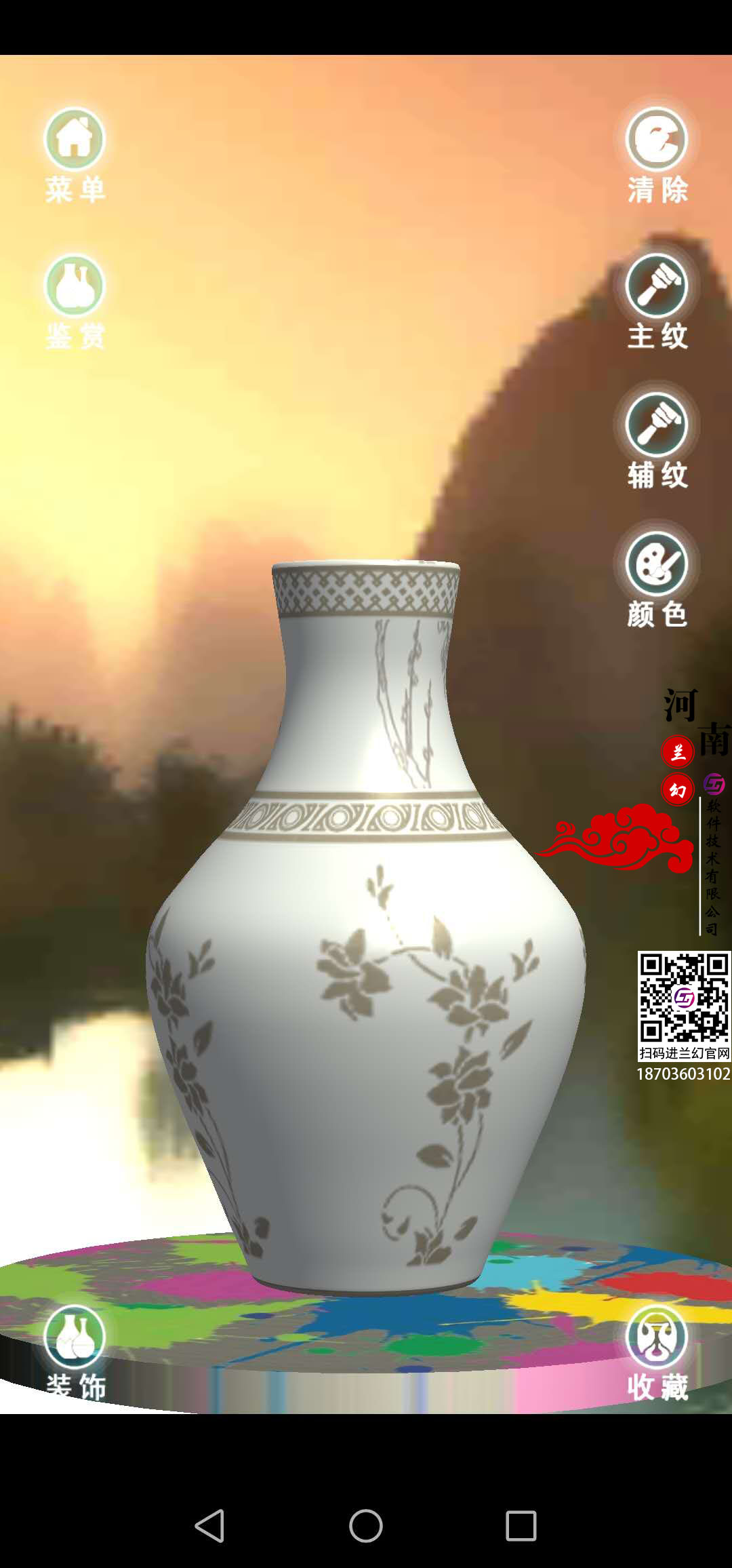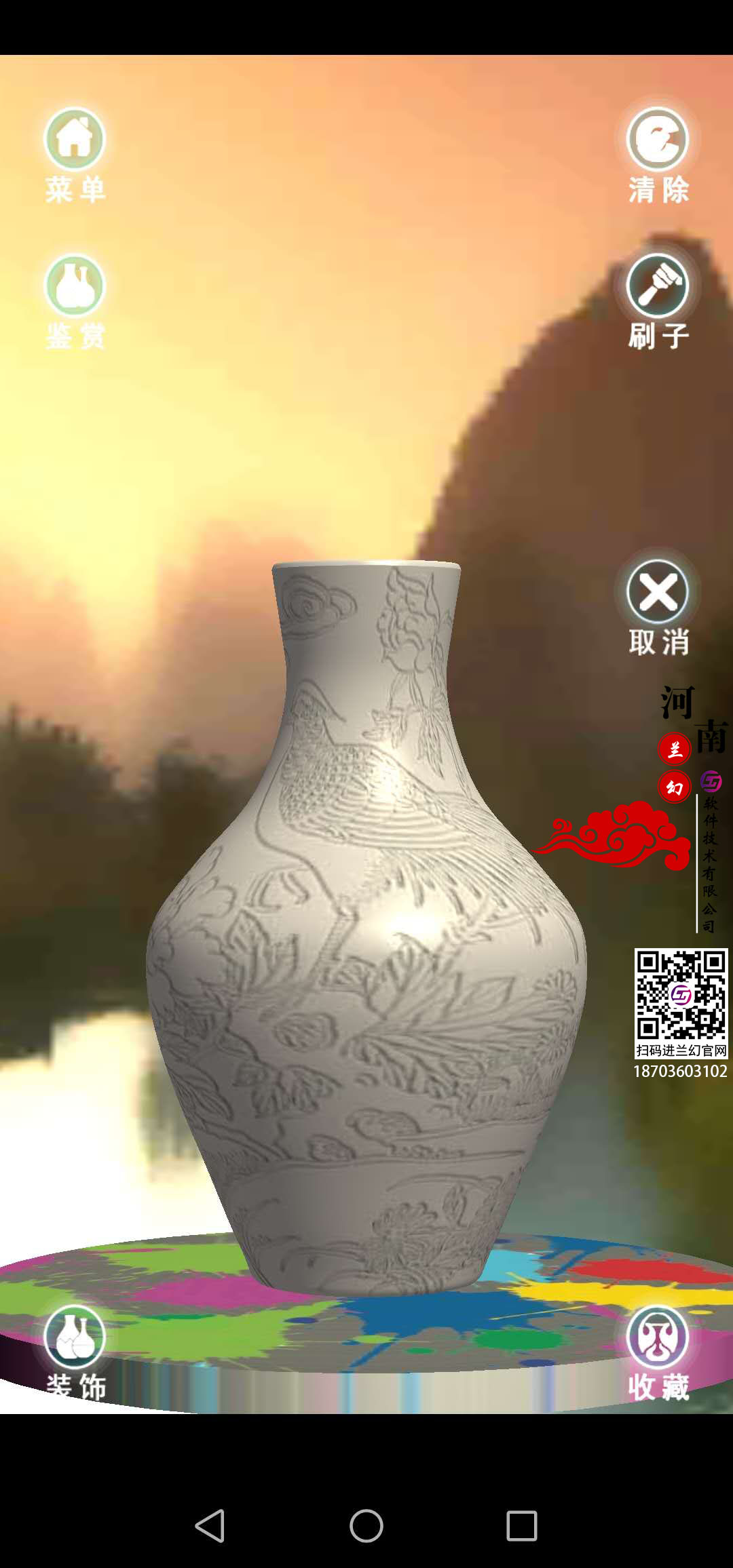 初次進入陶瓷虛擬仿真系統,會有簡單的操作介紹。在瓶身內上下拖動可以減少或增加泥坯的高度,水平方向由外向內拖動,可以縮減泥坯的半徑,反之由內向外拖動則可以增加泥坯的半徑。操作過程中拖動要緩慢,越著急快速的拖動,反而效果不好。在泥塑過程中,重力感應也是有一定效果的,豎直手機操作,泥坯也會變得直立起來,而平放手機則會有一定的俯視視角。